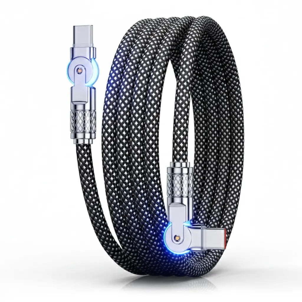 Robustes 60W-Type-C-Ladekabel mit 180°-Stecker und Stoffummantelung